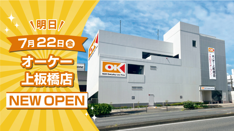 こんにちは。2022年07月21日 12時01分(木曜日)「OK」の最新情報をお知らせします。【7月22日(金)オーケー上板橋店NEWOPEN】
