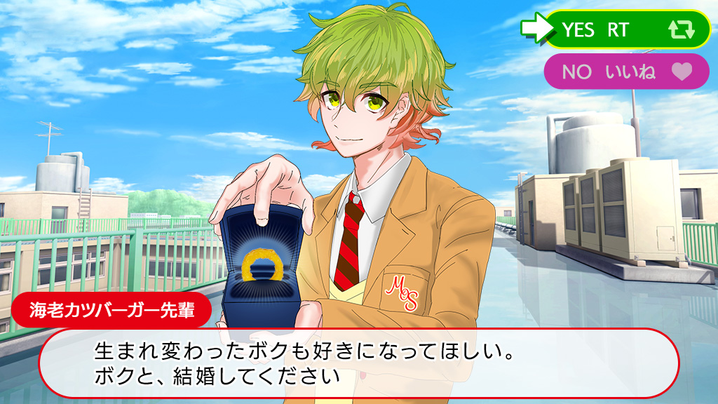 こんばんは。2022年06月05日 18時00分(日曜日)「モスバーガー」の最新情報をお知らせします。海老カツバーガー先輩からプロポーズを受けました。