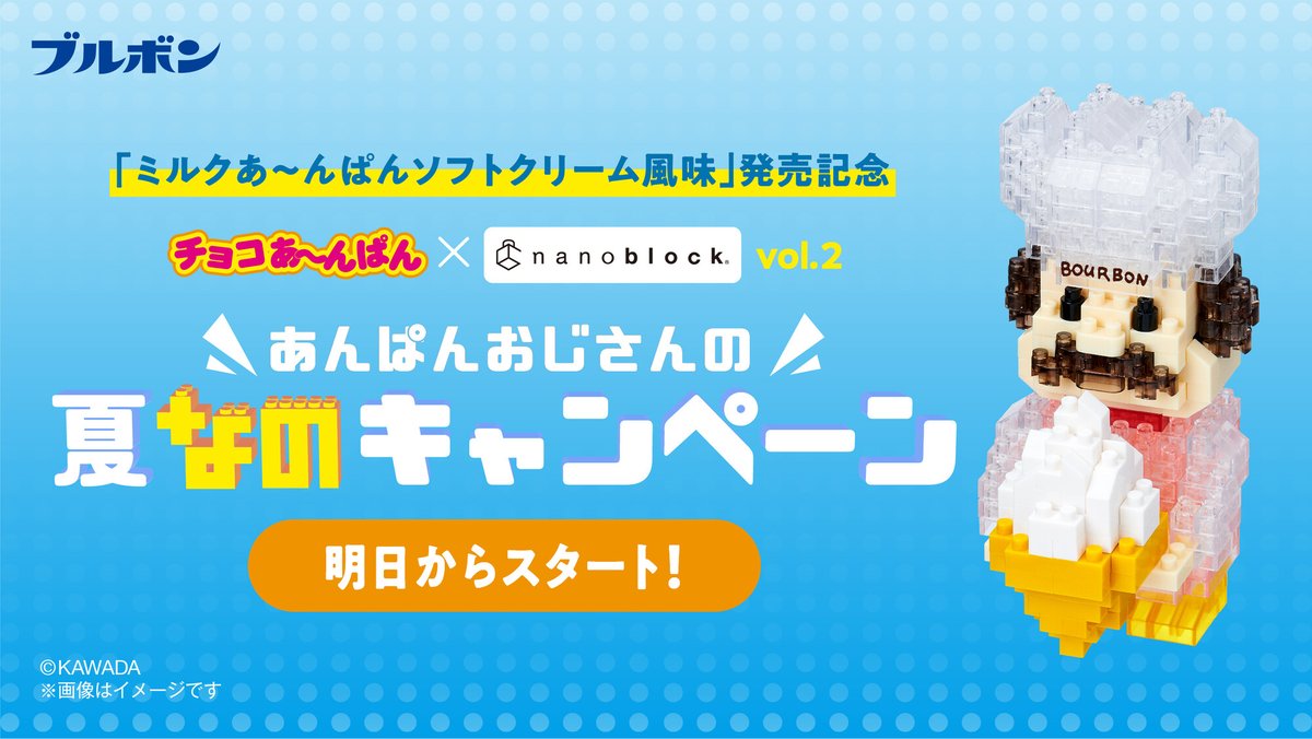 新発売を記念してnanoblockとのコラボ企画第2弾【あんぱんおじさんの夏なのキャンペーン】もスタートするよ