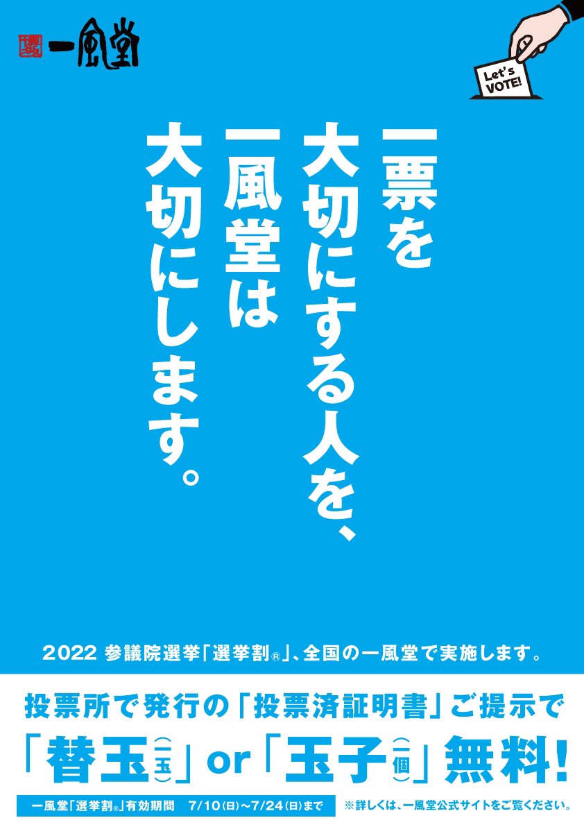 参院選の「投票済証明書」を提示すると選挙割で替玉一玉OR玉子一個無料でゲットできます