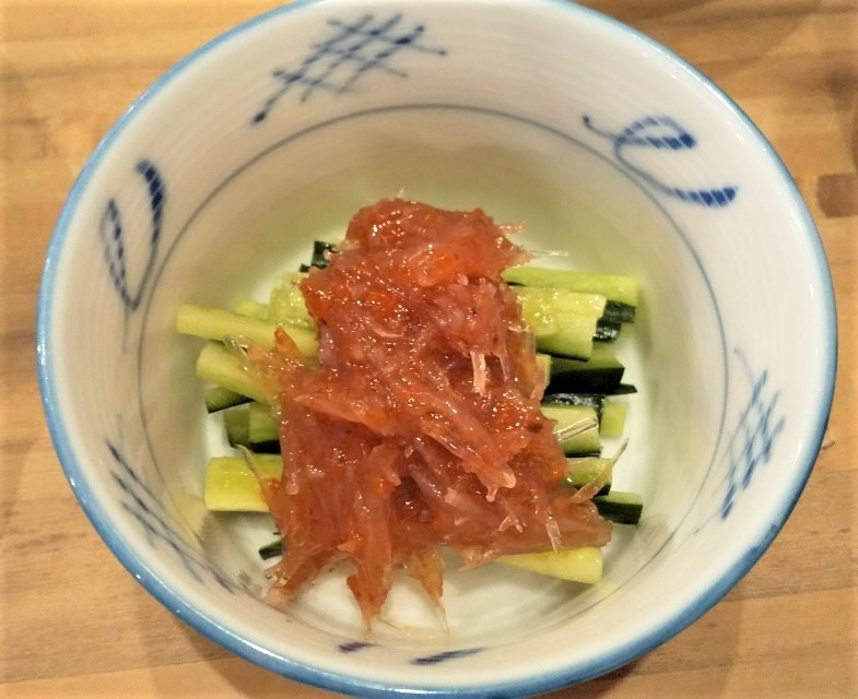 「貝刺し3点盛り(ホッキ貝帆立つぶ貝)」1429円と「梅水晶」439円でかんぱーい
