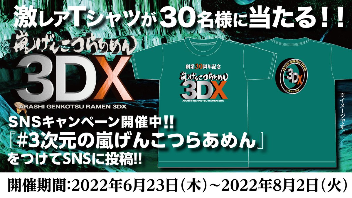 おはようございます。2022年06月23日 10時33分(木曜日)「らあめん花月」の最新情報をお知らせします。「嵐げんこつらあめん3DX」