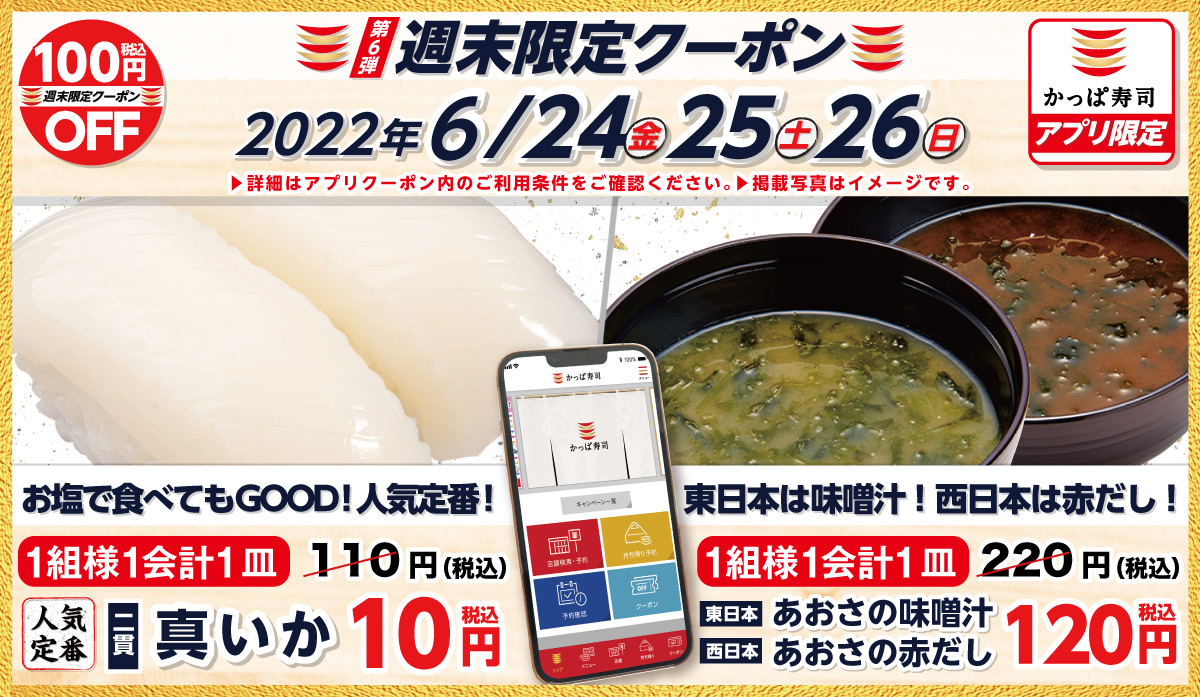 おはようございます。2022年06月24日 09時00分(金曜日)「かっぱ寿司」の最新情報をお知らせします。【アプリ会員限定】