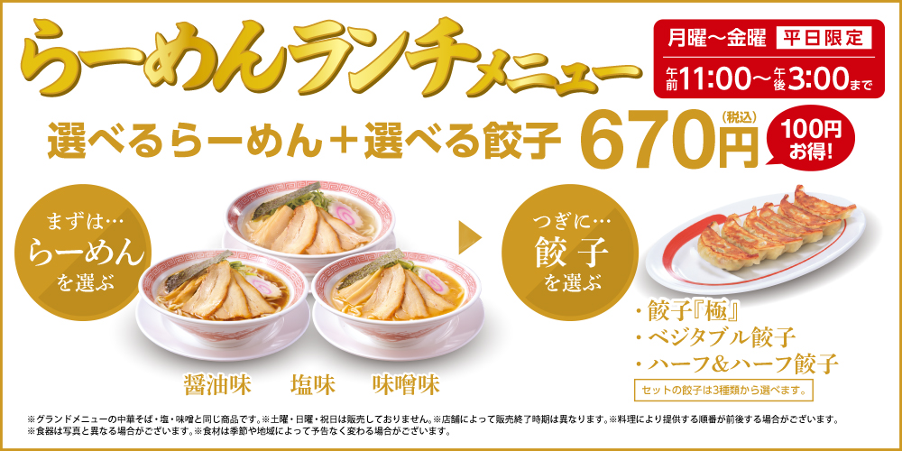 おはようございます。2022年09月15日 11時00分(木曜日)「幸楽苑」の最新情報をお知らせします。幸楽苑のらーめんランチ