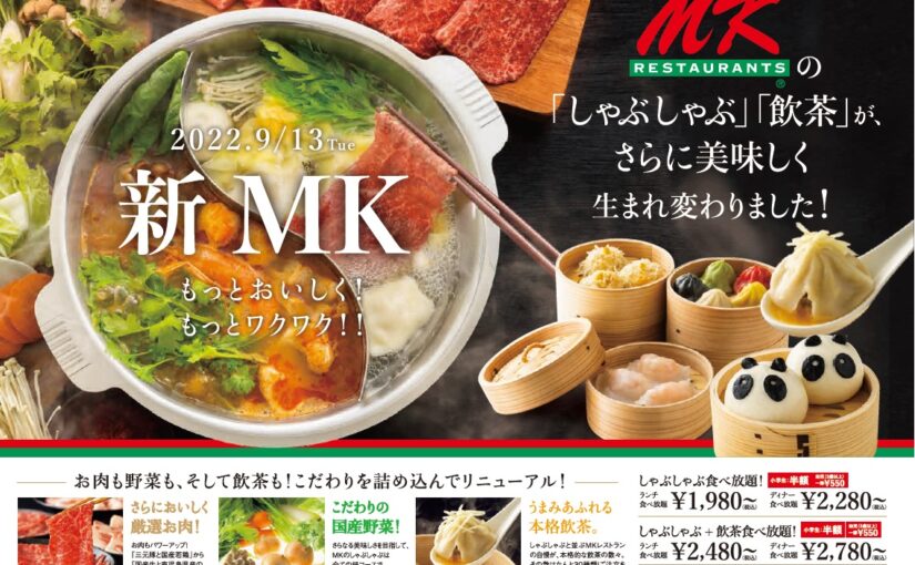 こんにちは。2022年09月22日 14時11分(木曜日)「MKレストラン」の最新情報をお知らせします。グランドメニューリニューアルで新しくなったのはMK鍋と飲茶だけではありません!