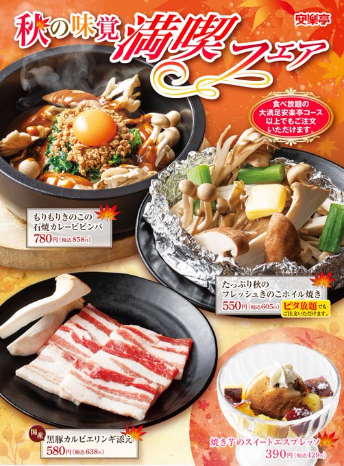 おはようございます。2022年09月23日 10時00分(金曜日)「安楽亭」の最新情報をお知らせします。秋の味覚満喫フェア
