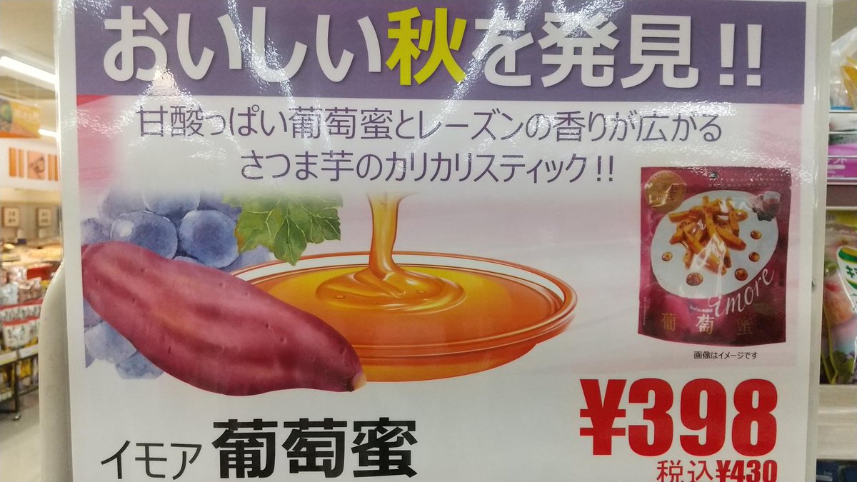 こんにちは。2022年09月23日 15時00分(金曜日)「アピタ・ピアゴ」の最新情報をお知らせします。綺麗な紫のパッケージが目立つ商品はイモア葡萄蜜という商品です