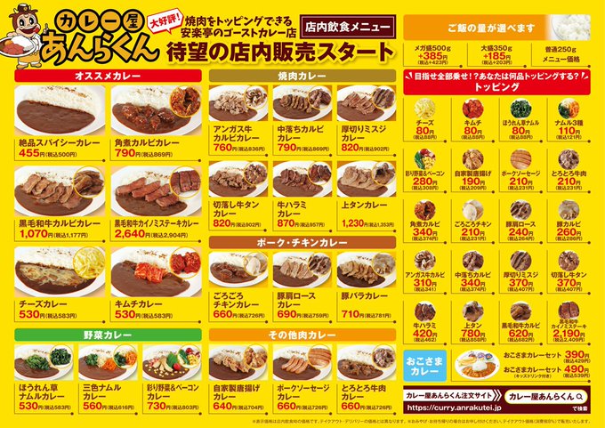 こんにちは。2022年09月23日 16時00分(金曜日)「安楽亭」の最新情報をお知らせします。金曜はカレーの日カレー屋あんらくん