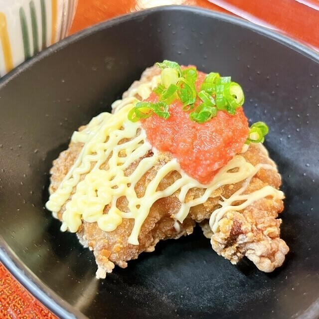 鶏唐にマヨをかけて明太子を追加すると間違えないおいしさです