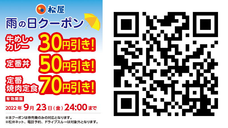 おはようございます。2022年09月24日 08時00分(土曜日)「松屋」の最新情報をお知らせします。9月24日