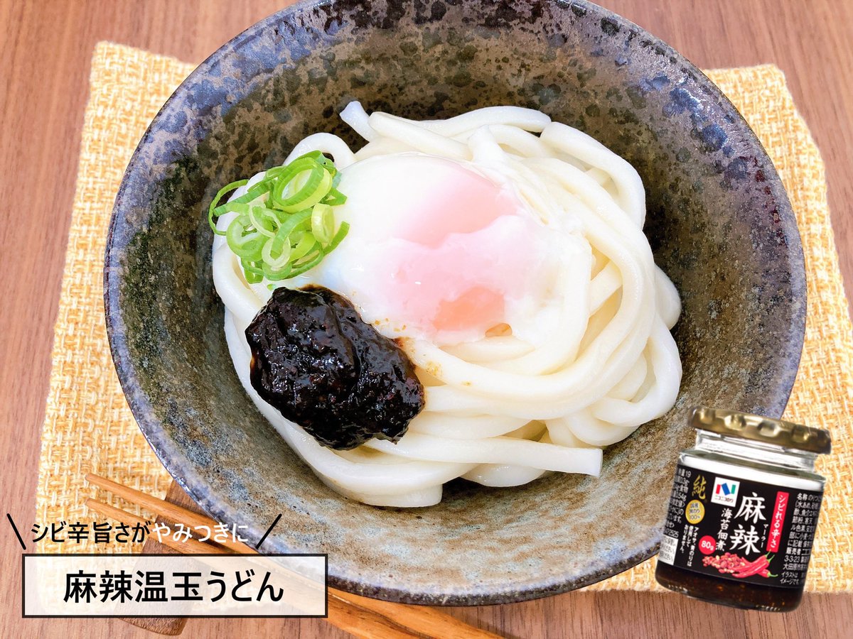 今日は海苔佃煮麻辣味を乗せるだけの【麻辣温玉うどん】のご紹介です!