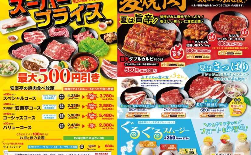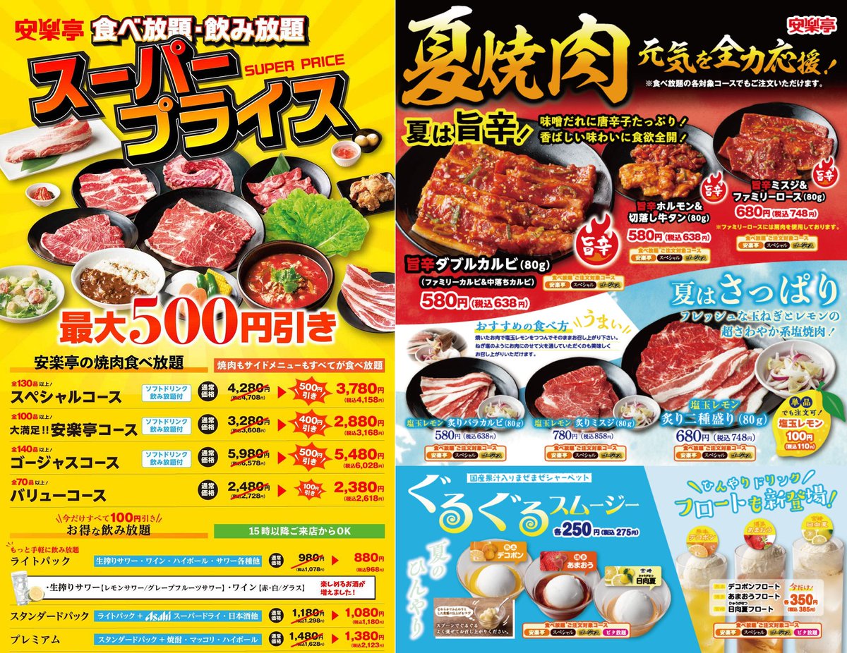 こんばんは。2022年08月05日 20時08分(金曜日)「安楽亭」の最新情報をお知らせします。食べ放題飲み放題スーパープライス