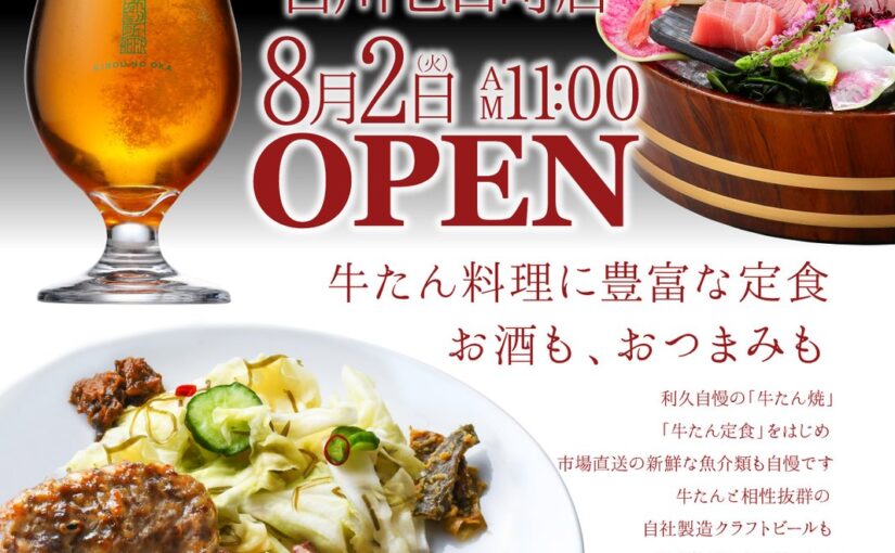 こんにちは。2022年08月06日 12時00分(土曜日)「牛たん炭焼 利久」の最新情報をお知らせします。