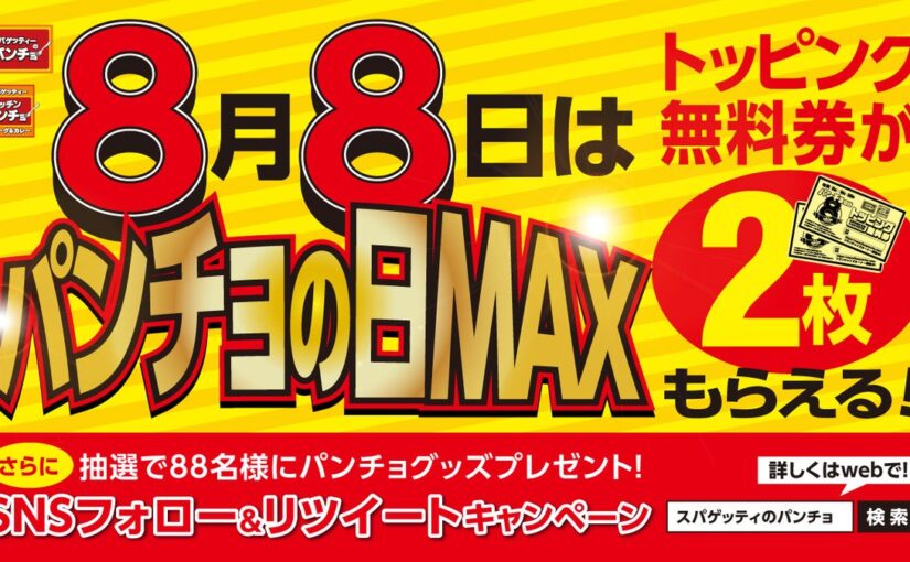 おはようございます。2022年08月06日 11時50分(土曜日)「スパゲッティーのパンチョ」の最新情報をお知らせします。こんにちわナポ