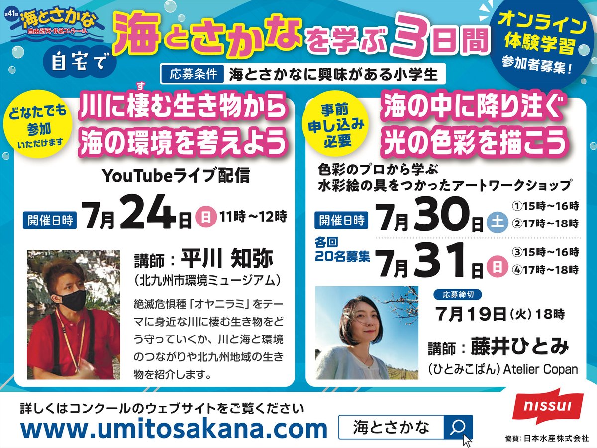 ニッスイが協賛する「海とさかな」自由研究作品コンクールではオンライン体験学習の参加者を募集中!