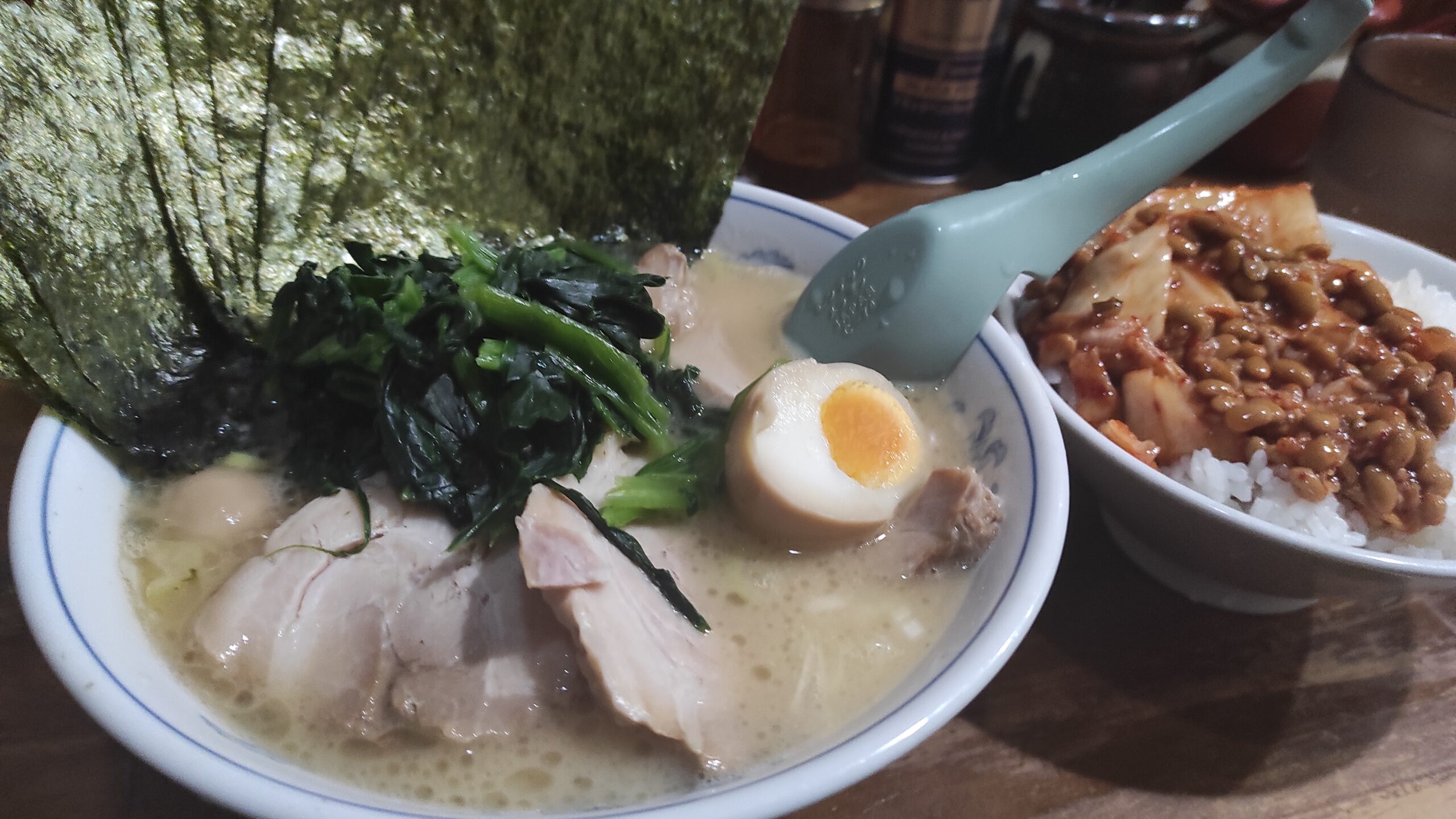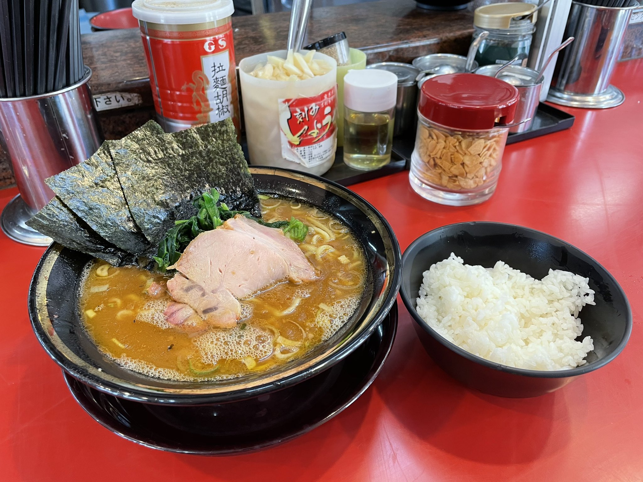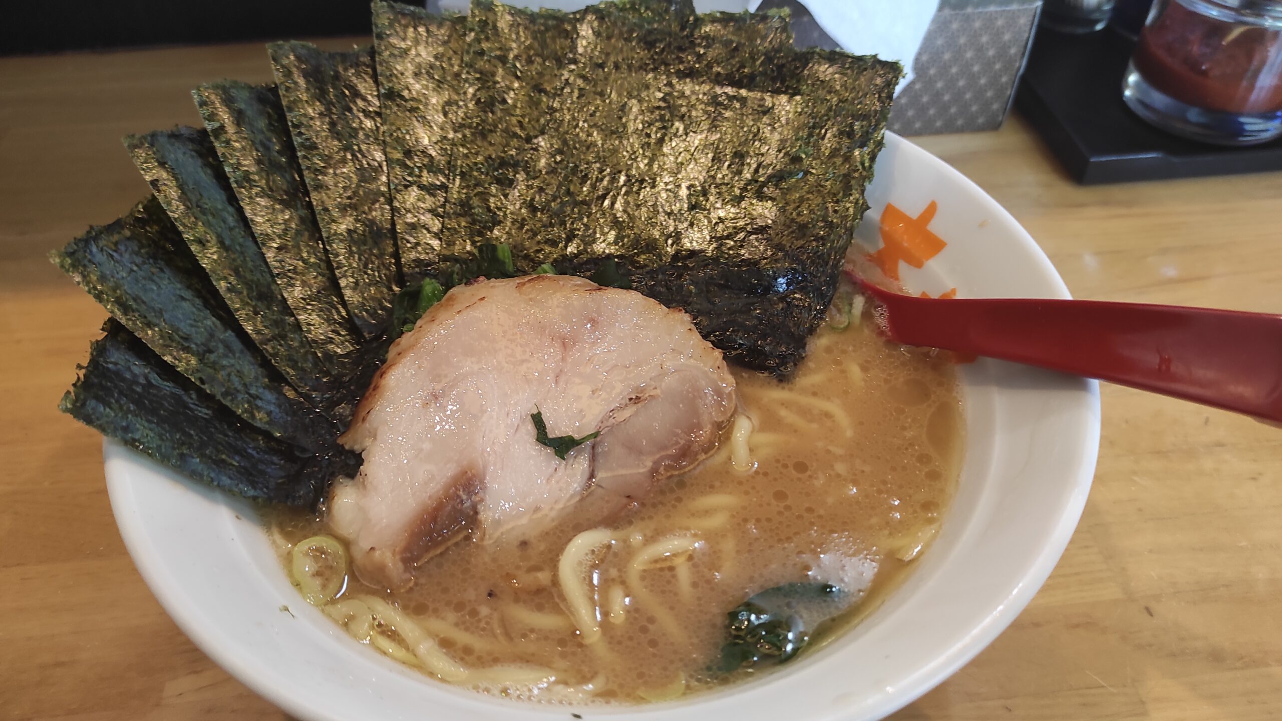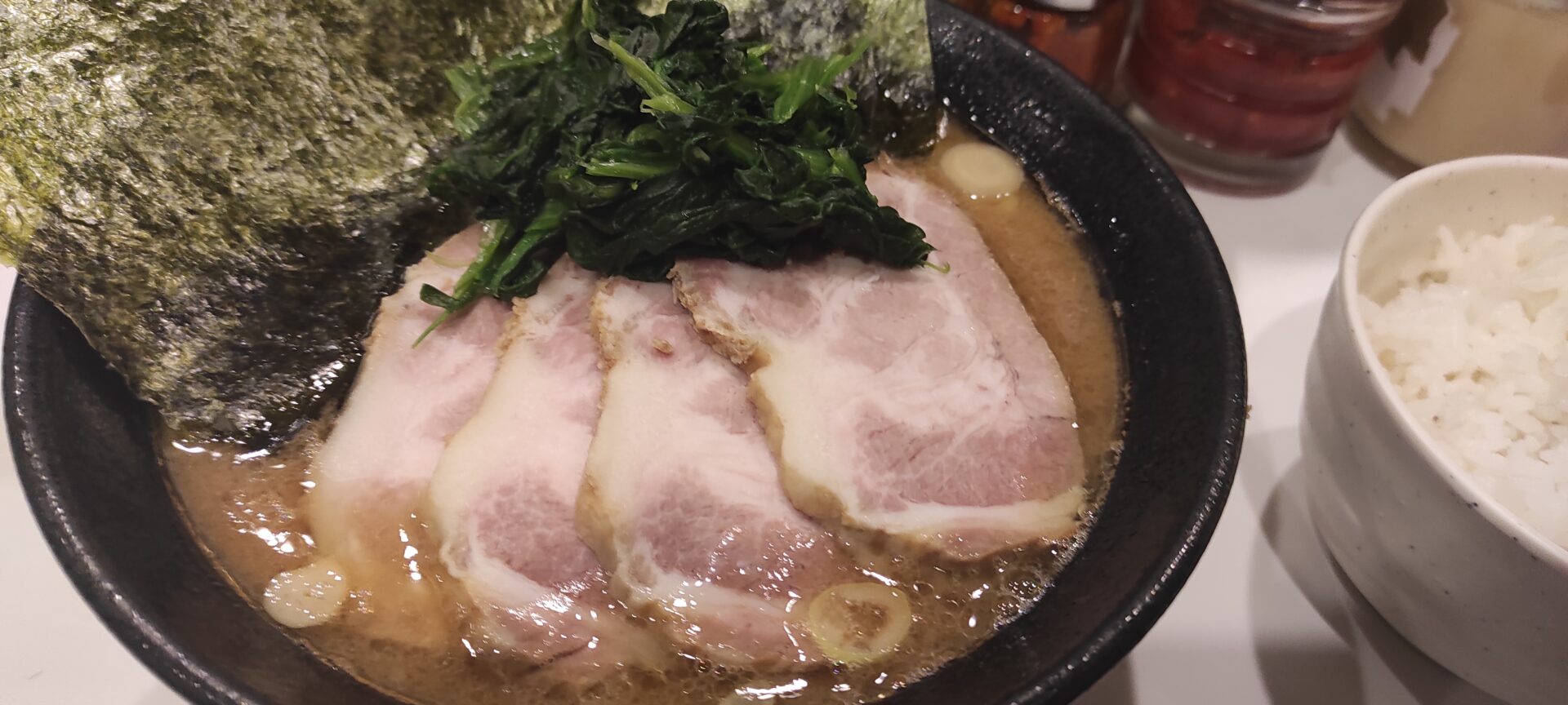 日の出町の駅前にある極味家に行ってみました。以前から気になってはいたのですが、この手の看板やポスターなどがゴテゴテなタイプは美味しかった記憶がないので躊躇していました。 行者にんにくなどはないが卓上調味料は豊富。刻み玉ね … 続きを読む 極味家は濃厚な家系ラーメン!味は…卓上の刻み玉ねぎ込みなら美味しい【日の出町 横浜市】