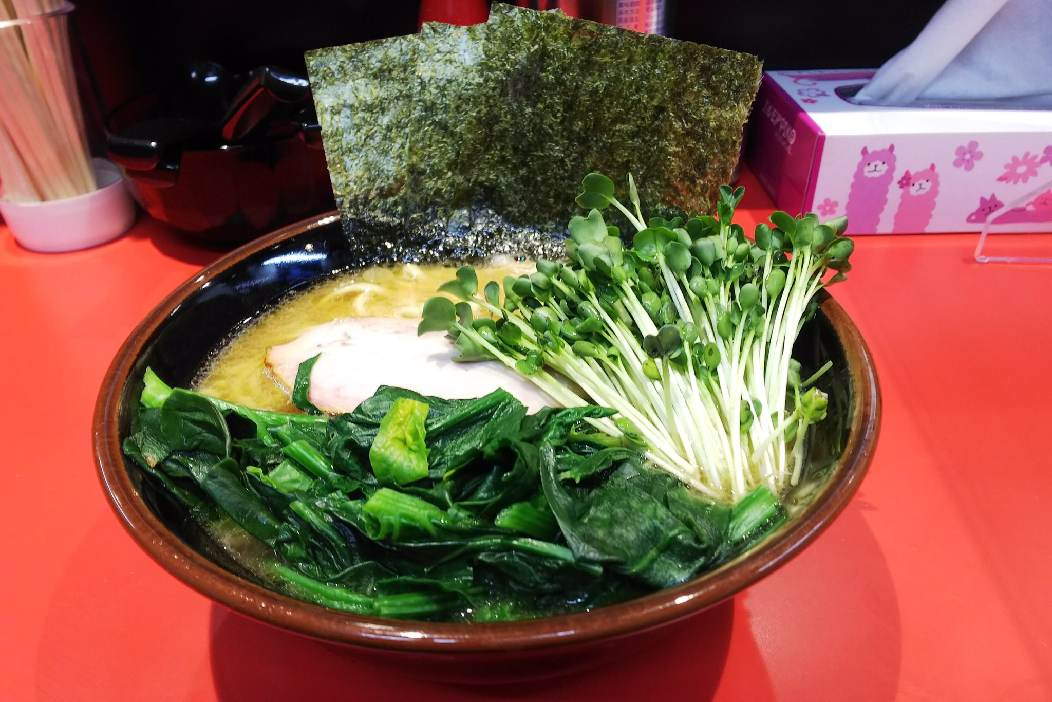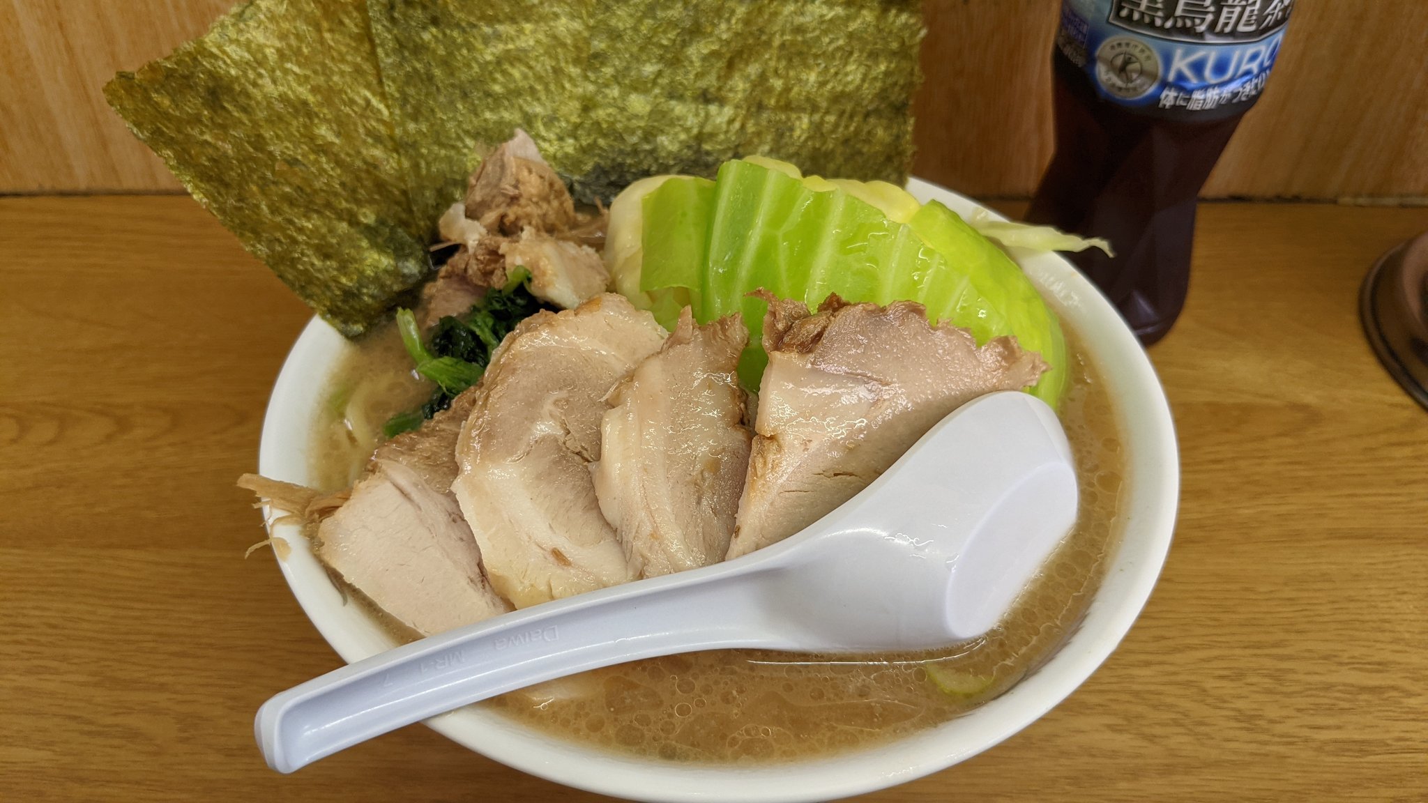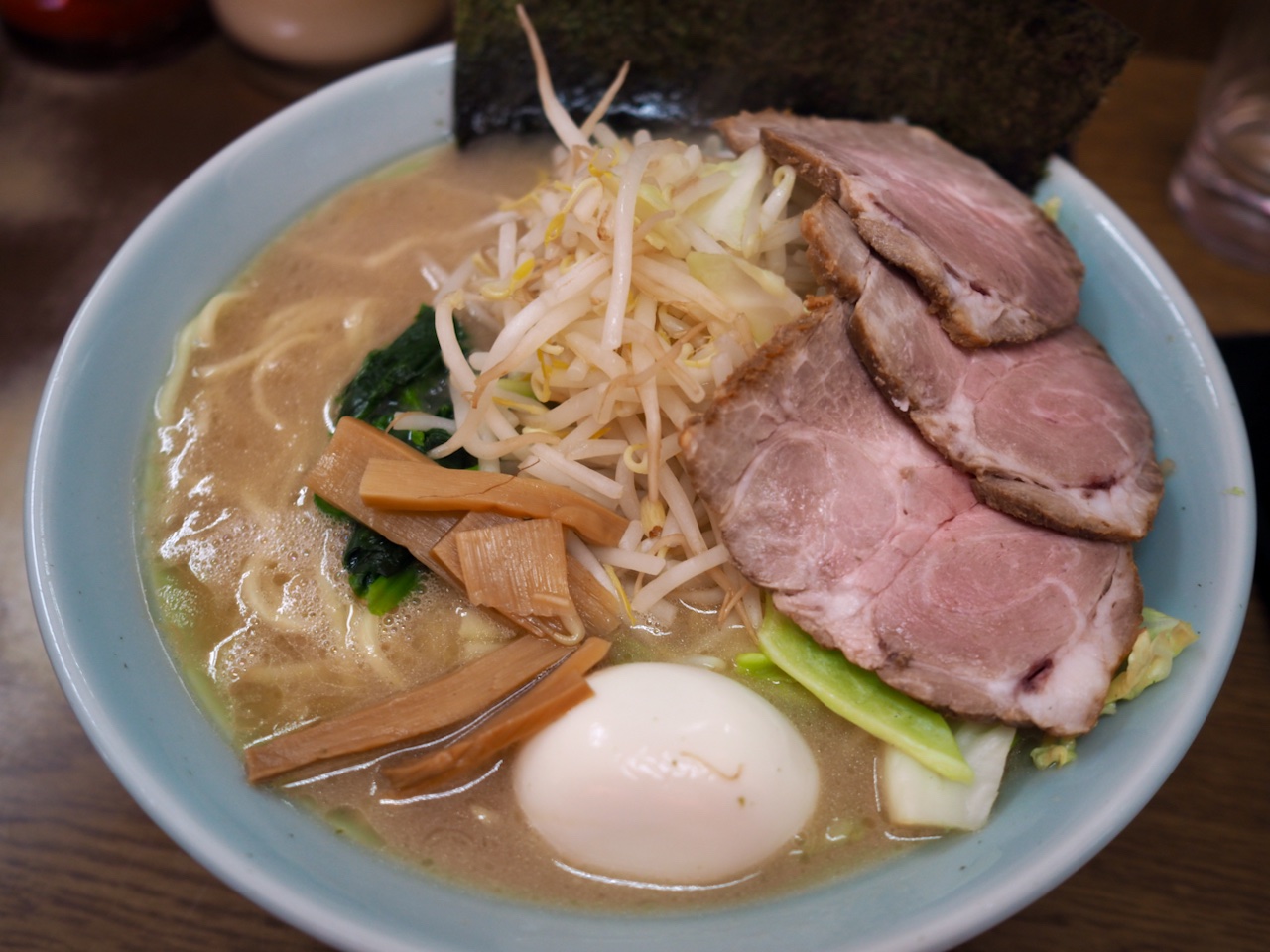 | トッピング | 味玉,うずらの卵,チャーシャー,ほうれん草,白髪ねぎ,キャベツもやし |