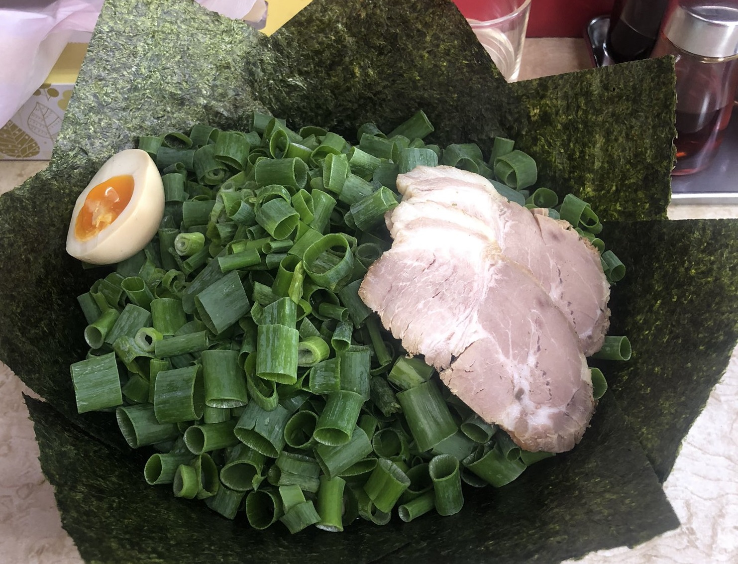| トッピング | 味玉,チャーシャー,海苔,ほうれん草,刻みネギ,白髪ねぎ,青ネギ,辛ネギ,たまねぎ,きくらげ,野菜ミックス |