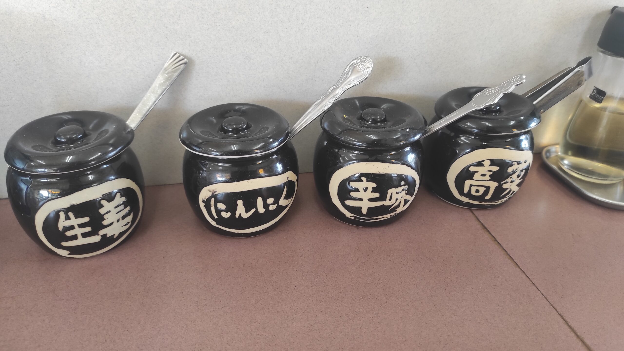 卓上調味料 おろしニンニク,おろし生姜,お酢,豆板醤,醤油,ラー油,高菜・辛子高菜,たくあん